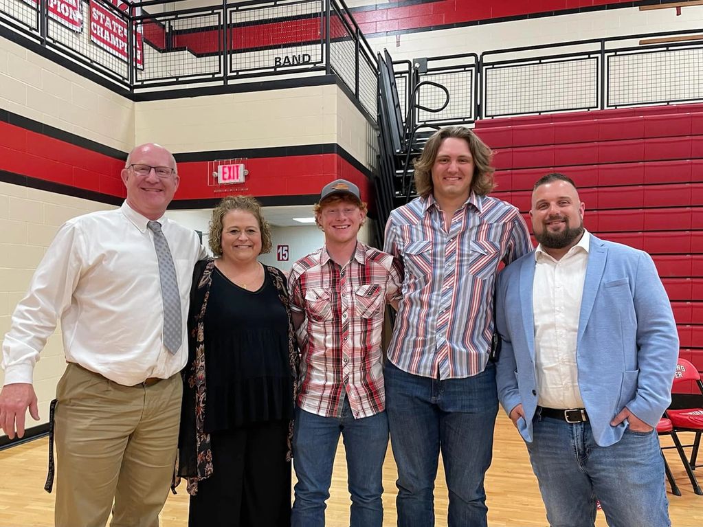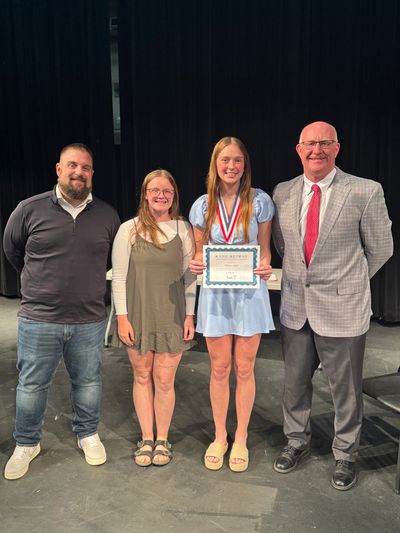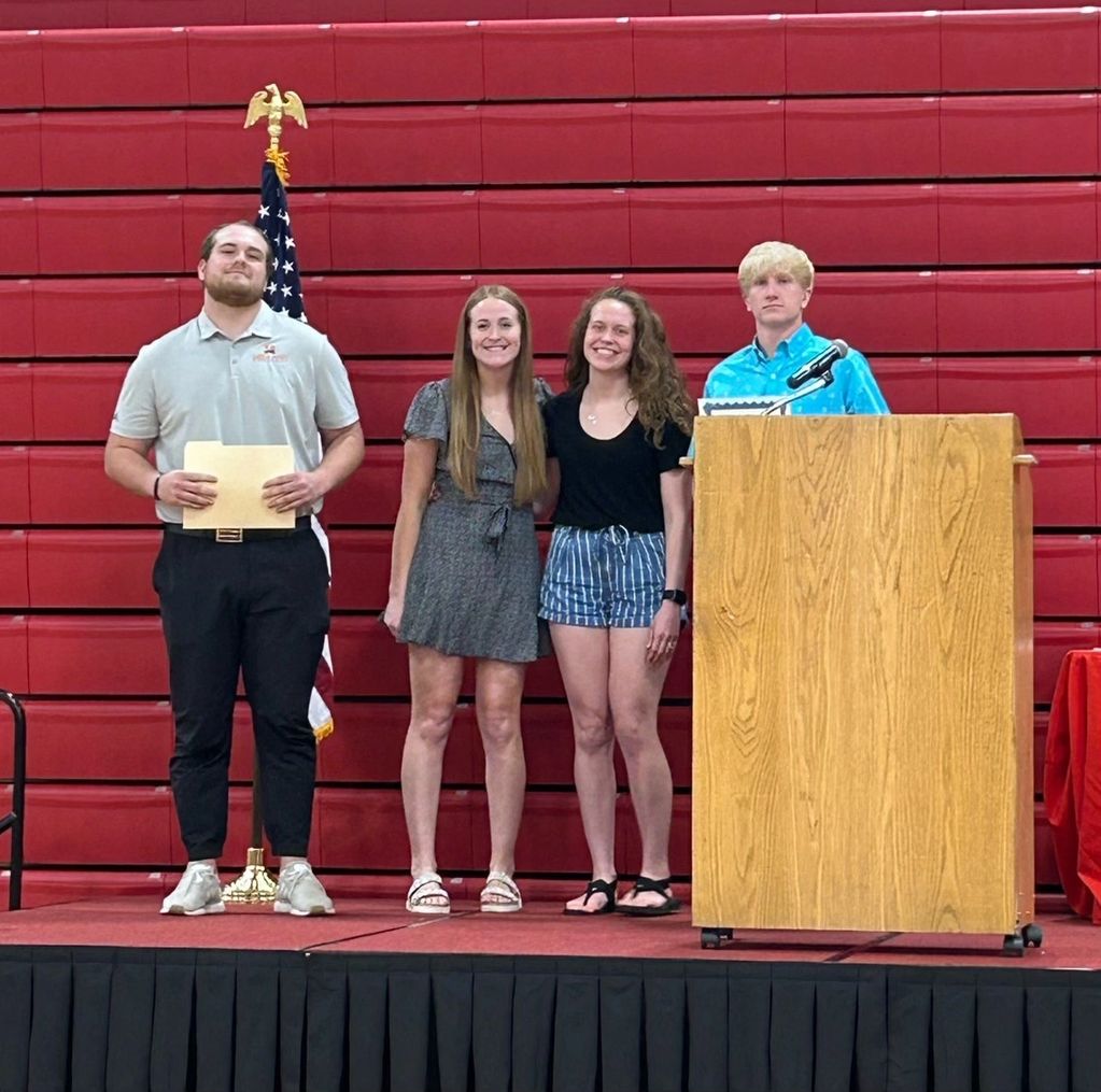 The 2025 scholarship recipient was Kalison Miller. Pictured with Kalison are Adam Demike, the scholarship coordinator, Skylar Reiman, Kade's sister, Kalison, and Kevin Reiman.